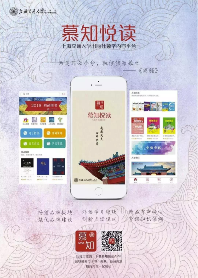 上海交通大学出版社的APP“慕知阅读”平台,将从即日起至2月9日,免费开放全场电子书资源(首批300余种),帮助大家掌握健康常识,学习专业知识,畅读悦读空间,共同打赢防疫攻坚战。