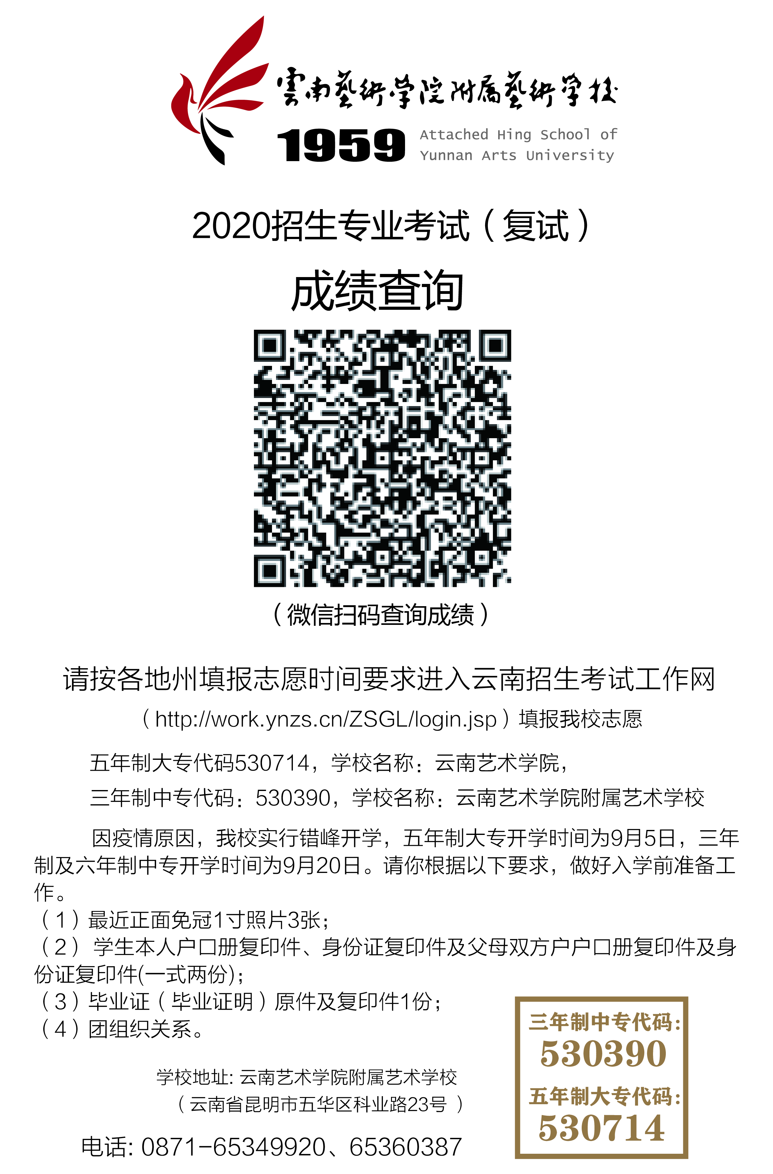 云艺附艺校2020年招生专业考试(复试)成绩查询