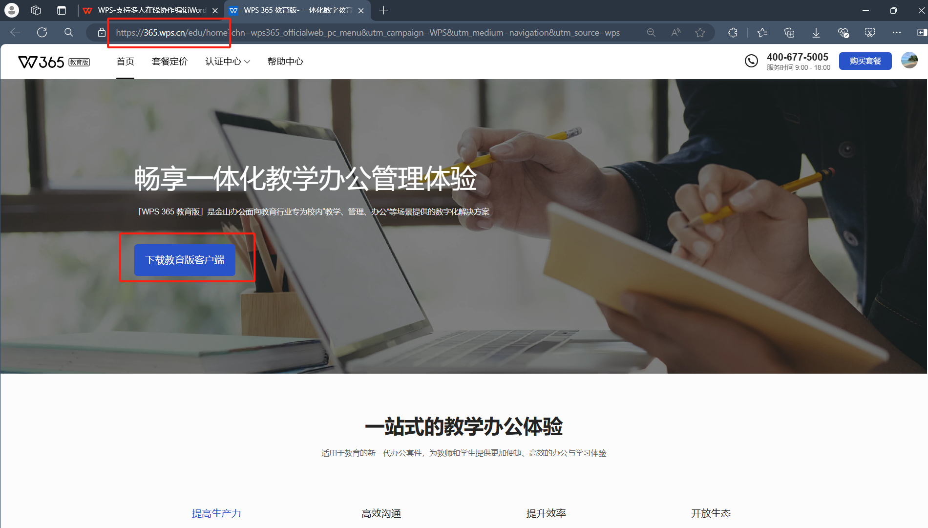 通过输入网址http://365.wps.cn/edu/home下载WPS365教育版,安装客户端