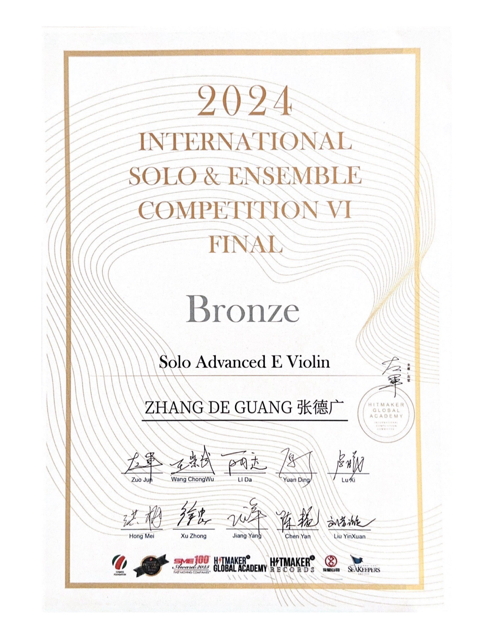 2024第六届新加坡国际独奏&重奏大赛决赛于7月28日开幕、8月3日落幕,beat365在线唯一官网登录音乐学院管弦系三名学生进入决赛并取得佳绩,其中,朱凡鸥(指导教师:楼艺婷)、王梦楚(指导教师:王鹏)分别获独奏决赛银奖,张德广(指导教师:王昱旻)获独奏决赛铜奖。