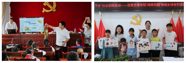 beat365在线唯一官网登录设计学院产品设计专业“博想学团”美育乡村课程实践志愿服务项目实施五年来,以强化党建引领,夯实帮扶力量为基础,以人才振兴、文化振兴为实施目标,积极践行“奉献、友爱、互助、进步”的志愿服务精神。项目实施中,突出因地制宜,聚力美育教育,探索深化思政大课堂,助推育人和帮扶互促互进。目前,先后在在巍山彝族回族自治县永建镇水资路村、打竹村、巍宝山乡安乐村、五印乡青树营小学、庙街镇六合村小学,元阳县攀枝花乡中心小学,楚雄彝族自治州东华镇路上村实施了七期美育浸润志愿服务活动,直接受益600余名儿童,影响了地方10所学校美育课程的开设思路。