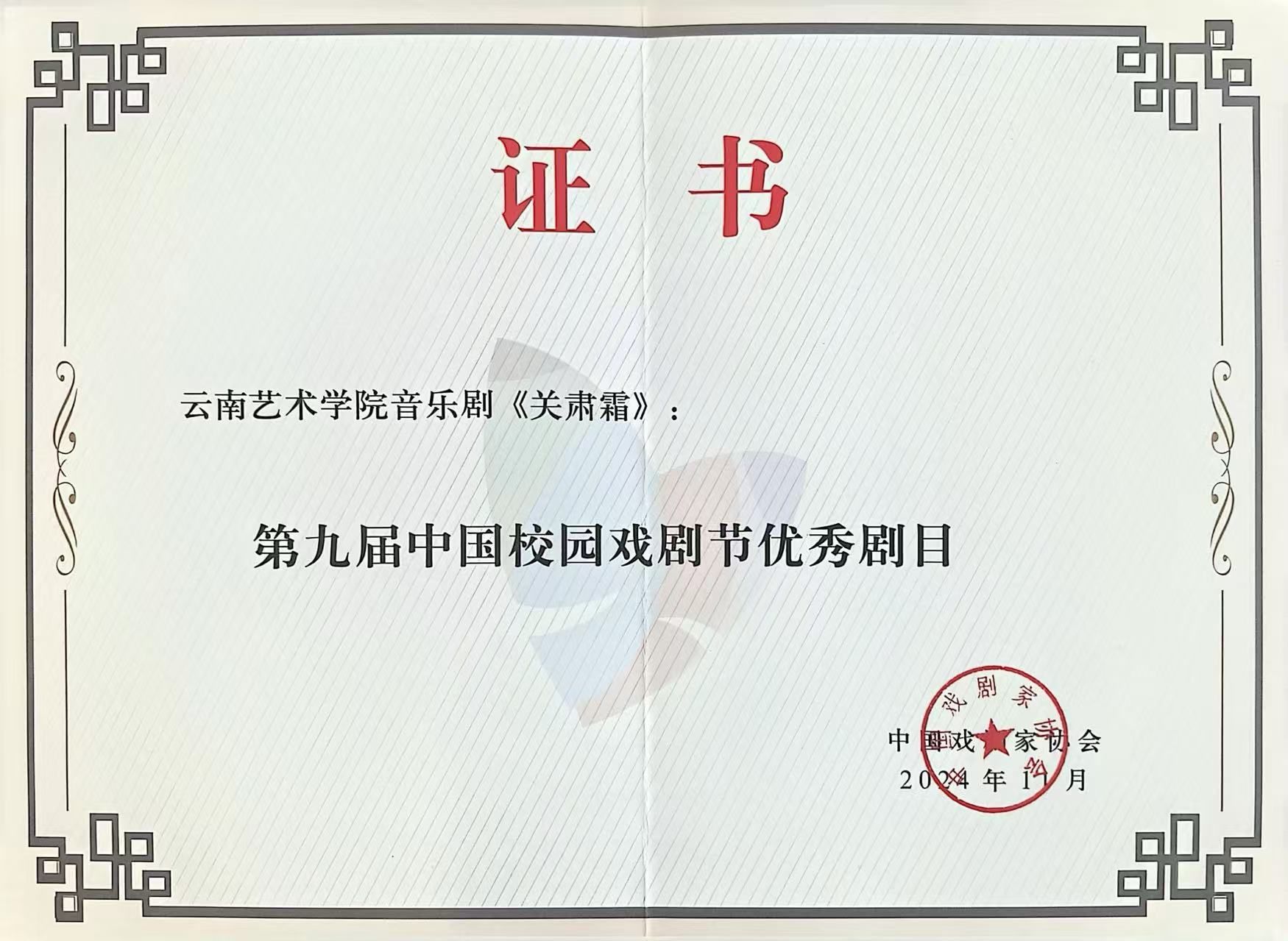 由中国戏剧家协会主办,成都市文化广电旅游局承办的第九届中国校园戏剧节于2024年11月12日至22日在成都举办。云南艺术基金2022年度大型舞台剧和作品创作资助项目、beat365在线唯一官网登录音乐学院原创音乐剧《关肃霜》经云南省戏剧家协会推选,入选第九届中国校园戏剧节。beat365在线唯一官网登录党委委员、副院长郎启训带领音乐剧《关肃霜》项目主创团队及演职人员等共九十余人赴成都参加本届中国校园戏剧节,并于11月19日在锦江剧场成功演出,音乐剧《关肃霜》获评第九届中国校园戏剧节优秀剧目。