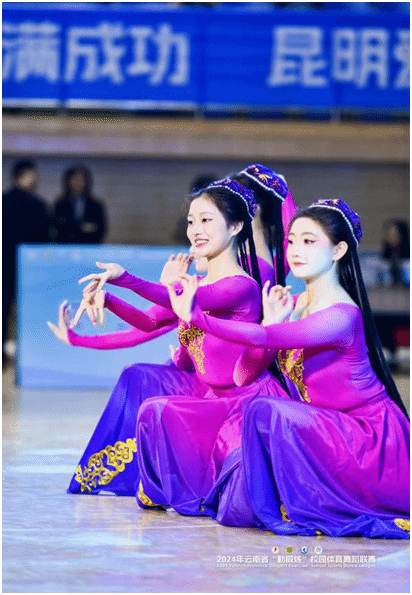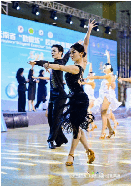 2024年12月13日-15日,由云南省教育厅主办、昆明学院、云南经济管理学院承办的云南省“勤锻炼”校园体育舞蹈联赛总决赛在昆明安宁市举行。本次比赛有107个参赛单位,2000多名选手同台竞技。我校体育教学部组队参赛,由石刚老师担任领队、余甜教师带队,选派10名队员参加本次比赛,在为期两天的比赛中,经过激烈的半决赛,最终进入决赛,我校荣获大学普通院校组校园6人恰恰恰第一名、大学普通院校组艺术创编舞第一名、拉丁单人R第五名、拉丁单项C、单人C、单人三项L、单项R第七名。拉丁单项R、单项C、单人R、单人三项L第八名的成绩。本次比赛展现了beat365在线唯一官网登录的团队魅力和集体风采。