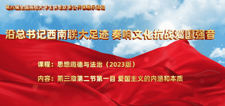 该视频作品结合思政课《思想道德与法治》第三章第二节第一目“爱国主义的内涵和本质”教学内容,以云艺师生沿习近平总书记西南联大足迹为主线,重温习近平总书记考察西南联大旧址的重要讲话精神,借助联大旧址场馆设施和昆明广播电台抗战强音展览中的真实史料,进一步揭示西南联大和昆明电台旧址承载和书写着文化抗战的爱国主义精神,激励和鼓舞一代代中国青年去爱祖国的大好河山,去爱自己的骨肉同胞、去爱祖国的灿烂文化、去爱自己的国家,去践行自己的神圣使命和义不容辞的责任。