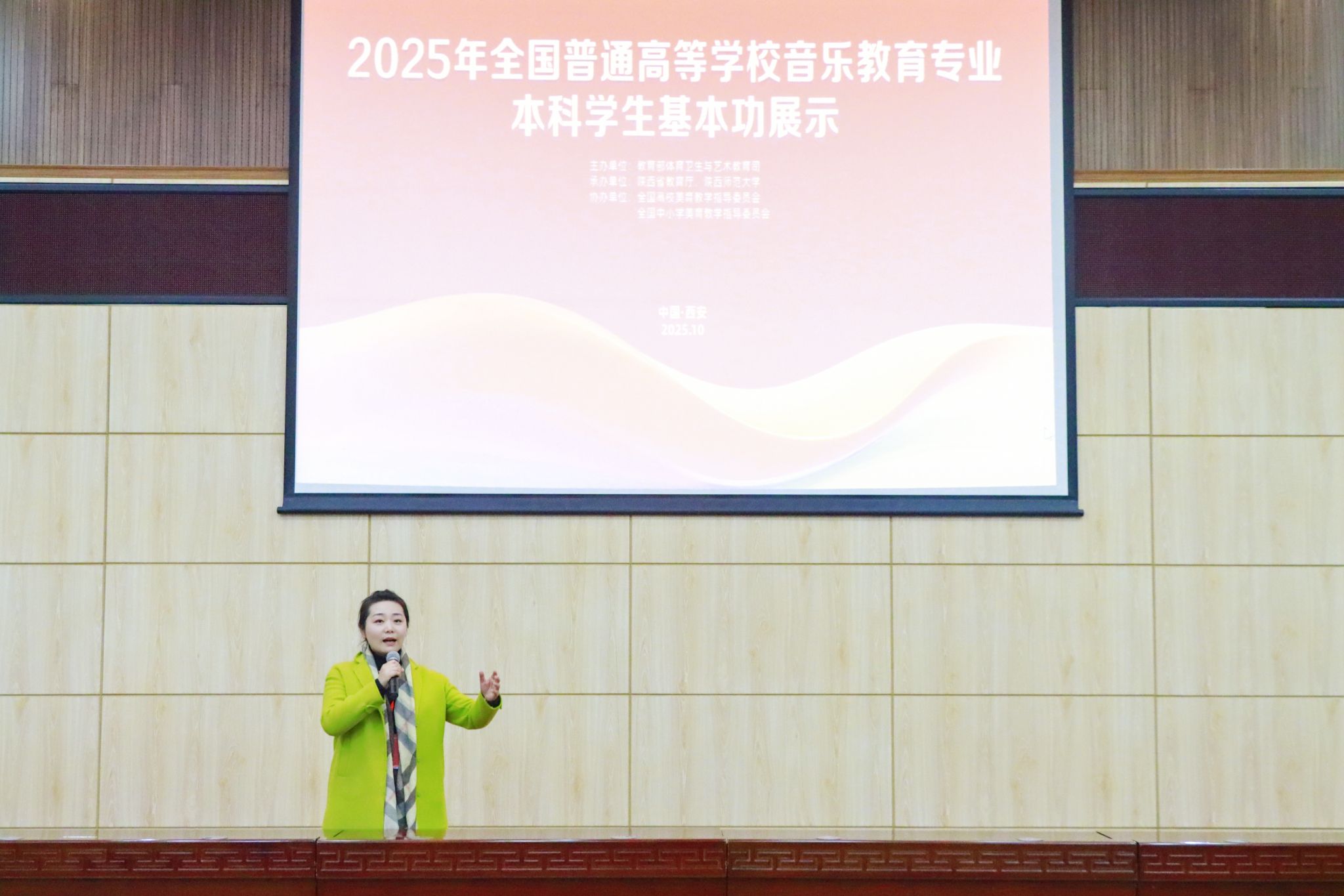 2025年全国普通高等学校音乐教育专业本科学生基本功展示由教育部体育卫生与艺术教育司主办,陕西省教育厅、陕西师范大学承办,全国高校美育教学指导委员会、全国中小学美育教学指导委员会协办。本次基本功展示于2025年10月26日至10月30日期间在陕西师范大学长安校区举办,作为全国高校音乐教育领域高规格、具有权威性与影响力的交流展示平台,吸引了来自全国31个省(区、市)及新疆生产建设兵团93所高校的89名指导教师、267名学生参赛。展示分学生组与教师组,学生组涵盖教学展示(微课)、即兴弹唱、合唱指挥、自选项目(器乐、舞蹈、戏曲、戏剧);教师组包含现场说课、审美和人文素养展示、专业技能展示(声乐演唱、钢琴演奏、中外乐器演奏、指挥、即兴弹唱)、社会实践等内容,全面考察师生综合能力,充分体现音乐教育专业“教”“艺”并重的核心理念。