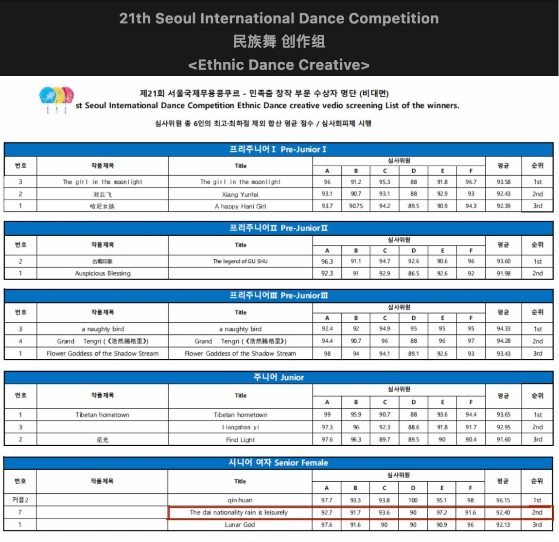 韩国首尔国际舞蹈大赛是由联合国教科文组织举办,受到各国舞蹈界关注的高规格舞蹈赛事之一,2007年该项赛事被文化部列为国际艺术比赛项目二类比赛。该比赛旨在寻找年轻优秀的舞者,促进不同舞种领域的各个国家的舞者的深入交流,推动舞蹈艺术的大众化和国际化跃进,是亚洲参加国家最多,范围最广的舞蹈比赛之一。