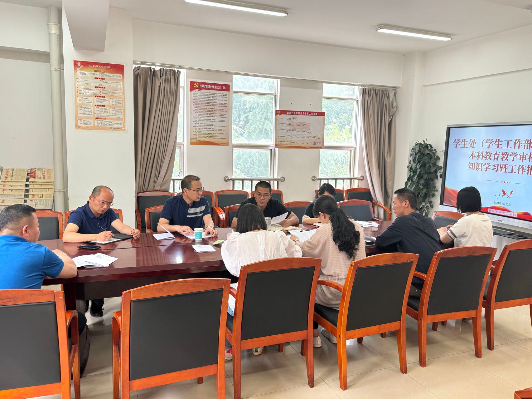 为深入推进新一轮本科教育教学审核评估工作,有效解决自评自建过程中出现的问题,进一步加深部门全体人员对本科教育教学审核评估对我校发展重要性的认识,强化对本科教育教学审核评估指标体系和内涵的理解,明确审核评估工作的相关要求及各自的工作任务和责任,学生处(学生工作部、武装部)于2024年4月30日13:00召开了本科教育教学审核评估工作专题会议。会议由学生处处长黄涛主持,部门全体人员参加了会议。