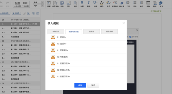 (2)再在把云盘中的视频插入到课程