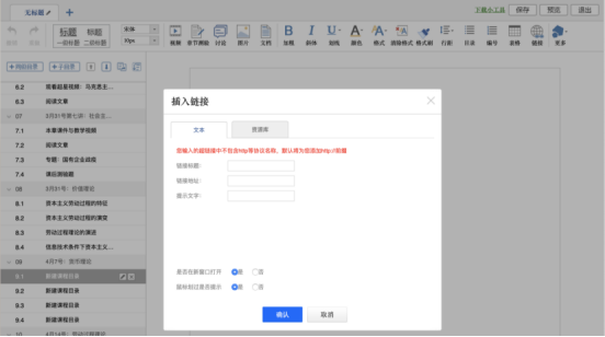 (1)在课程里添加B站视频的网页链接