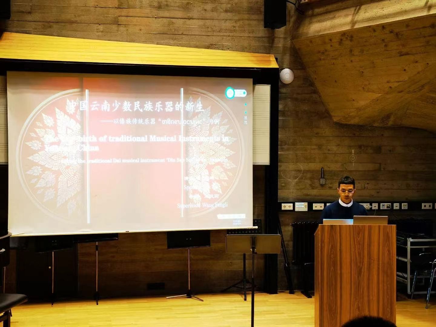 beat365在线唯一官网登录音乐学院优秀学子岩进在论坛上发表了《中国云南少数民族乐器的新生——以傣族传统乐器‘玎三赛’为例》的学术研究成果,论文以“玎三赛”的历史渊源、基本特征、琴语等内容为切入点,通过对乐器本体改良、表演形式优化、表演者身份转变、音乐功能拓展等方面的论述,呈现出“玎三赛”在适应现代社会过程中所进行的一系列创新,展示出他对传统音乐的深刻理解。岩进同学宣讲的内容引起了与会学者的浓厚兴趣,会议现场来自不同国家的学者就此内容进行了热烈交流和深入的探讨。