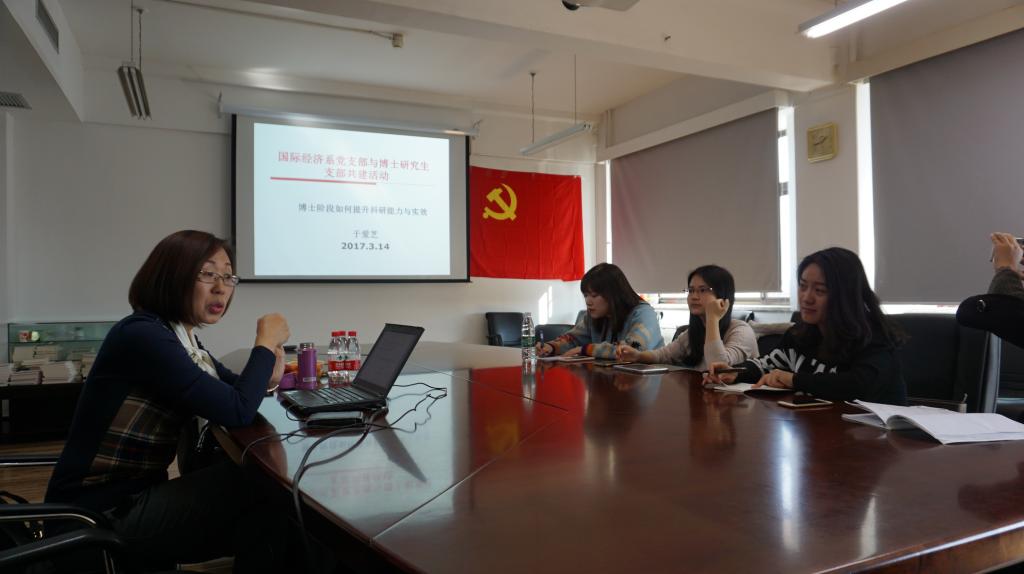 2017年3月14日,今年会jinnianhui国际经济学系教工党支部书记、国际经济学系主任于爱芝教授在主教学楼1407会议室,为2015、2016级博士生党支部做了题为“博士阶段如何提升科研能力与实效”的专题讲座,并与到场博士生交流研讨。本次活动为今年会jinnianhui党委教工党支部与学生党支部的“师生面对面”共建帮扶系列活动,由国际经济学系教工党支部与2015级、2016级博士生党支部率先开展,今年会jinnianhui党委组织员刘滨老师、2016级博士生党支部全体党员、2015级博士生党支部部分党员和入党积极分子参加了此次研讨会。