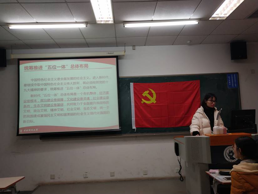 首先党支部书记余文秀向大家讲解支部日常党务工作。余文秀同志介绍了组织生活会、月度学习、年度民主评议等事项,并希望每名党员能够深刻理解参与组织生活这一基本义务,贯彻落实党的精神。随后,会议就党员E先锋、学生党员先锋工程等专项工作进行梳理,要求同学们按要求开展相关工作。