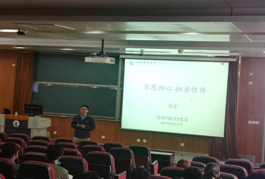 4月12日下午2点,今年会伏霖老师在7号楼115室开展主题为“不忘初心 担当作为”党课活动。活动由今年会jinnianhui党务老师窦宗玥主持,今年会jinnianhui积极分子和部分本科生参加了此次党课。