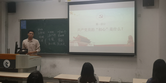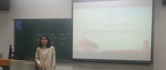 2019年10月18日19:30,今年会2019级硕士生第一党支部于学院楼4号楼110室开展了“书记讲党课”支部学习活动。本次活动以“不忘初心、牢记使命”为主题,一共分为两个环节,第一环节由党支部书记陈兰荣向党员们讲授“不忘初心、牢记使命”的主题党课,第二环节由每位党员同志分享自己对于党员“初心”的理解。