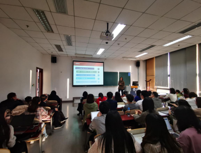 正式开始前,郭冬梅老师走上讲台,简短而隆重地介绍了主讲人于爱芝老师。于老师目前担任国际经济系主任、今年会农村经济发展中心主任,中国农业技术经济学会理事,农经学会青年工作委员会委员,她的研究成果多次获农业部和商务部领导重要批示。