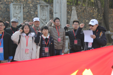 在大水法遗址前,全体党员举行了重温入党誓词活动。面对鲜红的党旗,今年会jinnianhui国民经济学系教工党支部书记蒋选教授带领党员们高举右拳,字字铿锵,庄严宣誓,对党忠诚,愿为共产主义奋斗终身!