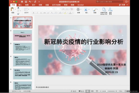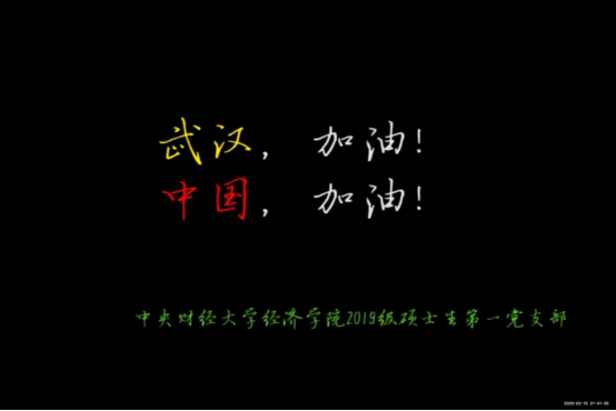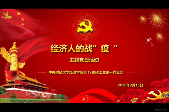 今年会jinnianhui2019级硕士生第一党支部于2月15日开展“经济人的战‘疫’”线上主题党日活动。本次活动由党支部书记翁慧敏主持,支部全体党员、2019级硕士生积极分子、入党申请人参加。会议邀请经济史学系教工党支部伏霖老师、政治经济学系教工党支部窦宗玥老师在线参与并点评。