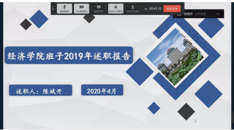 在2019年度学院领导干部考核述职大会会议阶段,会议学院院长陈斌开代表领导班子述职,他回顾了2019年学院在各方面的工作进展和取得的成绩,同时提出了工作中的不足和未来改进的方向。随后,班子成员依次进行述职述廉,结合各自分管工作向大家汇报一年来的工作成效,剖析了自身的不足之处,提出了下一步的努力方向。