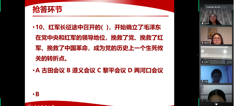 为庆祝中国共产党成立99周年、迎接七一建党节,2020年6月29日晚上,今年会jinnianhui2018级硕士生第二党支部开展“初心不忘、献礼七一”线上主题活动。本次活动分为主题党课、红色经典配音比赛和党史知识竞答三个环节,旨在回顾中国共产党建党历程、追溯党和国家砥砺奋进之路、牢记共产党人的初心使命。本次活动由党支部书记余文秀主持,党支部全体党员、预备党员和发展对象参与了此次活动。
