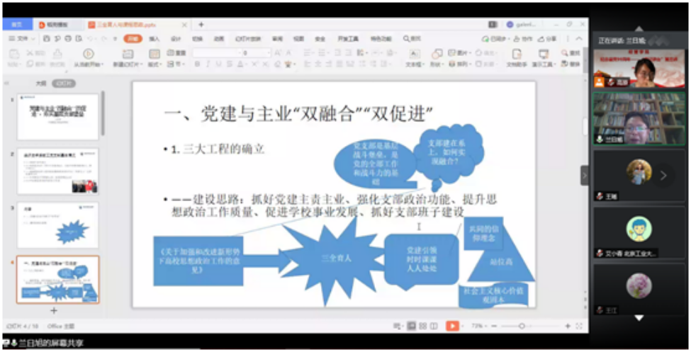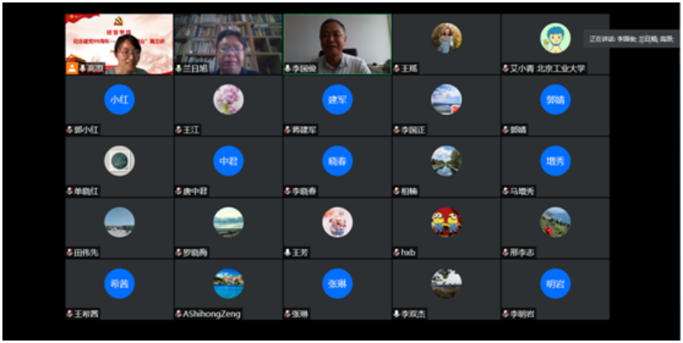 今年会经济史学系教工党支部书记、系主任,全国首批“双带头人教师党支部书记工作室”项目负责人,北京市优秀党务工作者兰日旭教授,应北京工业大学经管学院邀请,于7月2日下午参加庆祝建党99周年专题“书记讲台”活动。经管学院理论中心组全体成员、学科部主任、教工党支部书记、教工党员共100余人参加。
