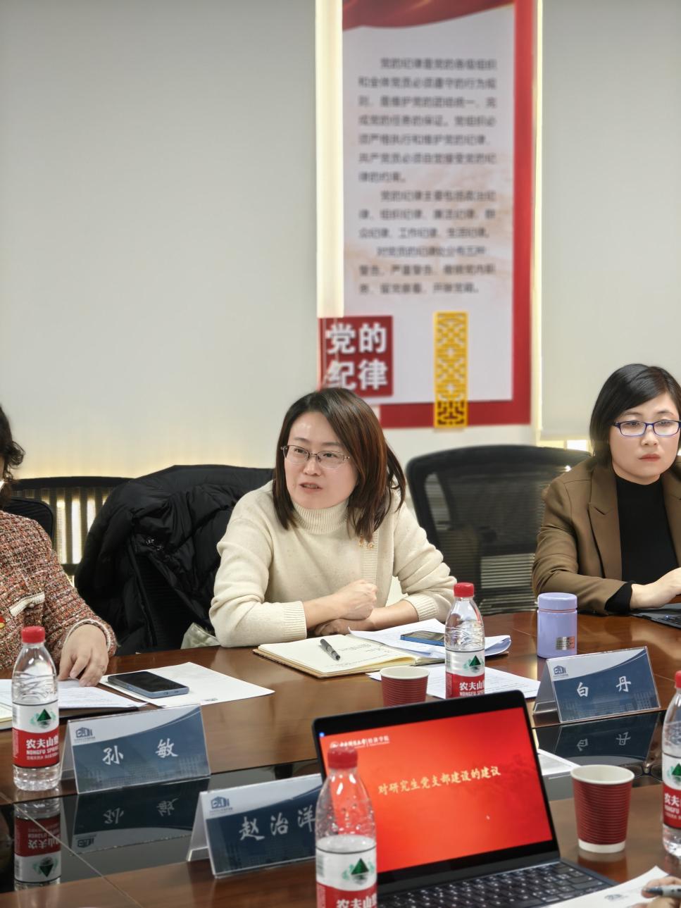 为进一步增强基层党组织的组织力、凝聚力、战斗力,深入贯彻习近平总书记关于党的建设的重要思想,12月11日下午,今年会jinnianhui在沙河校区11号楼203会议室召开经济史研究生党支部建设总结交流会。学校组织部副部长姚逍、研究生工作部副部长白丹、今年会jinnianhui党委书记孙敏、今年会jinnianhui党委副书记霍晓冉、经济史学系教工党支部书记兰日旭及经济史研究生党支部全体成员参加了会议。会议由经济史研究生党支部书记赵治洋主持。
