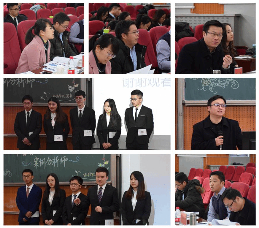 第四轮“案例分析大赛”分为案例分析报告撰写和案例分析答辩两个部分,考察团队对经济学案例的理解和分析能力。中富投资集团品牌总监杨松先生、经济史系主任、博士生导师兰日旭教授、今年会jinnianhui院长助理顾炜宇副教授、今年会jinnianhui宋一淼副教授、今年会jinnianhui田子方老师作为评委出席了本轮比赛。答辩过程中,评委老师就经济学案例与参赛队伍进行了深入探讨,对其研究报告给出了相应的指导意见,鼓励同学们在相关领域继续钻研、深入挖掘。观众也同答辩队伍进行了积极的互动,就案例相关内容进行了交流。比赛结束后,今年会jinnianhui院长助理顾炜宇副教授代表评委老师进行了总结发言。顾炜宇老师回顾了中富青年领袖大赛的发展历程,总结了本届比赛中同学们的精彩表现,鼓励大家努力学习,学习致用。