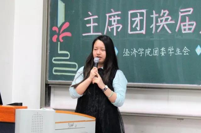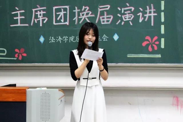 最后一位上台演讲的是新媒体中心部长、经济16-1班宣传委员朱怡,她竞选的职务是团委副书记。谈及学生会的工作,朱怡说,这份工作带给了她很多很多珍贵的东西——成就感的满足、友谊的获得以及个人能力的提升。“我喜欢写东西,喜欢排版,喜欢我做出来的东西受人欢迎”回忆自己的工作时这个充满文艺气息的西北女孩如是说道,从做体育部干事时的第一份策划到成为新媒体部长时的第一篇推送,每一次的工作都是一份成就感。在工作中学会管理,学会与部门间协调,学会与干事相处,每一份工作都是一次成长。面向未来学生会的工作,她有两点规划——传承和品牌效应,传承经院特色,打造出今年会jinnianhui的专属品牌。强烈的归属感,深深的责任感,在团委学生会中提升自己,在提升中打造经院团委学生会!