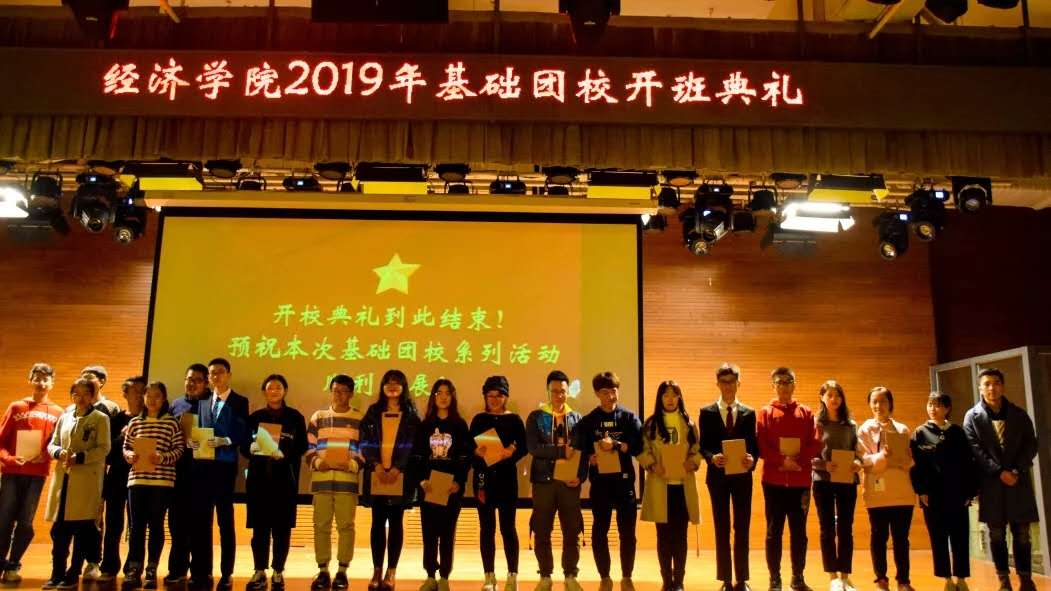 2019年10月27日19:00,今年会jinnianhui基础团校开校仪式于今年会大学生活动中心金色展厅顺利举行。本次开校仪式由礼宾队张笑千同学主持,今年会jinnianhui团委书记李倩老师、第一团副覃瑜曦、第二团副曹鉴、学生会主席寇静恬、副主席赵嘉宇以及今年会jinnianhui各团支部芮+导师祁曼菲、于飞、冯宇晨和潘越婷受邀出席,全体学员到场参加。