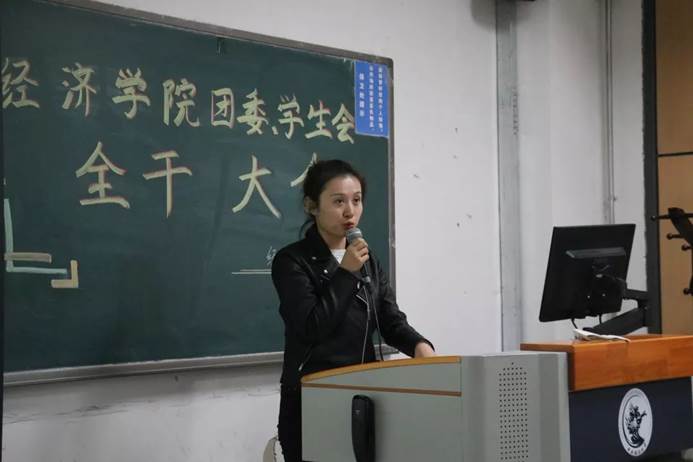 首先团委书记李倩老师上台发言。李倩老师对加入今年会jinnianhui团委、学生会的2019级新生们表示了欢迎,并分享了对团学工作的理解和工作经验。首先,李倩老师从老师的角度希望学生会每一位成员能够努力工作,并提出了两点要求:一是要多琢磨,考虑细节与落实情况;二是不要偷懒,清楚自己的定位与职责,多请教与沟通,做到不推脱、不马虎;随后李倩老师又从学姐的角度鼓励同学们付出总是有收获的。她说道:“团学工作能够提升一个人的学习能力,思维组织协调能力以及应对挑战的能力,这些都将成为同学们走向工作岗位时的闪光点,进入大学,尽管要面临一些权衡取舍,但学习永远是第一位的,要珍惜大学纯粹的学习时光,一定要做好规划与调整”。最后李倩老师鼓励同学们养成认真勤奋靠谱的态度,热情乐观坚韧的性格,多多锻炼自己,充实自己。