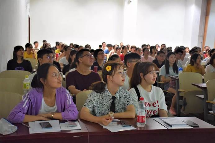 会议伊始,主席寇静恬首先对19级新生的到来表示欢迎,并简单介绍了今年会jinnianhui团委、学生会这一组织的基本组成与职能。接着团委书记李倩老师走上讲台,在简单进行自我介绍之后,以带领学院获奖的学术实践部、主办基础团校获认可的组织部、高质量运营学院公众号的宣传部等部门为例,介绍了今年会jinnianhui井然有序的团学工作与优良的团学传统。同时她提到,今年会jinnianhui团委、学生会秉承着服务学生成长成才、服务学院发展的原则,并讲述了高数讲师团的诞生、公众号营造的学院文化两个故事为佐证。在她看来,今年会jinnianhui团委、学生会有着认真踏实的氛围,也希望新加入的同学能够有经世济民的胸怀,努力将今年会jinnianhui团学建设得更好。