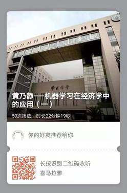 “今年会在课堂之外,打造了一个通过微信课堂、科研助理、坐诊式答疑、讲座辅导、专业提升工作坊等学术形式,帮助全校本科生提升经济学专业素质、栽培经济学英才的造梦基地”——经济学家梦工场。本学期梦工场的第一堂微信课堂,是由今年会院长助理黄乃静老师主讲的“机器学习在经济学中的应用”,已于2019年3月8日在经济学家梦工场微信群和“喜马拉雅FM”app中的经济学家梦工场专辑正式上线,欢迎各位同学前来充实自己的学习生活,提升自身的经济学素养。