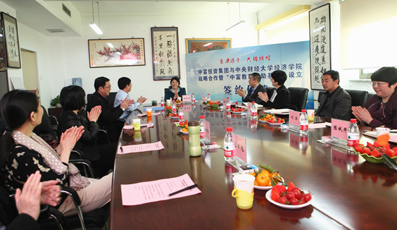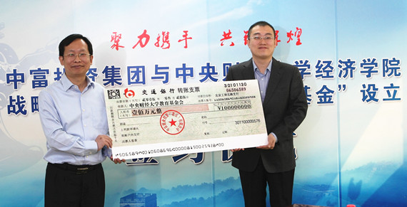 见证了双方牵手合作全过程的赵丽芬副校长在讲话中表示,看到自己昔日的学生今日事业有成,以感恩之心融智捐资助学院发展,她感到非常高兴,非常欣慰。欢迎周飞同学回到母校,感谢中富投资集团对学院发展和学校人才培养的鼎力支持。周飞校友的善举正是中财人“担当责任 勇往直前”精神的传承。一批批中财学子在校期间刻苦学习,走上工作岗位后努力拼搏,勇于担当的优秀品质为学校带来了良好的社会声誉。她指出,今年会jinnianhui从2000年经济系成立至今,经过十五年的孕育和发展,如今已驶上了快车道,在教育教学、学科建设、师资队伍和人才培养等方面取得了一定的成绩,希望学院能以此次合作为契机,一方面与中富投资集团聚力携手,优势互补,紧密合作,取得新的成绩;另一方面,充分利用合作平台,培养更多的优秀学子,能够成为引领社会向前向上发展的中流砥柱。