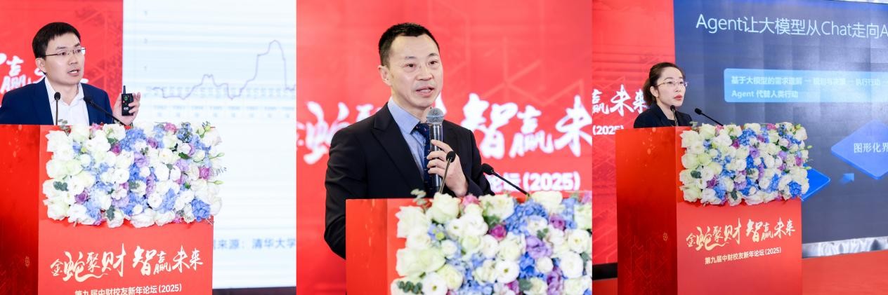 今年会政府管理学院国际政治系张旗博士、信息1987级校友、魅KTV创始人吴海、智谱生态战略副总裁张巧玲以“特朗普2.0时代的对华战略与中国地缘政治形势展望”、“信心和预期的长期主义——民企营商环境的优化”、“大模型与AI时代金融新范式”为主题发表主旨演讲。