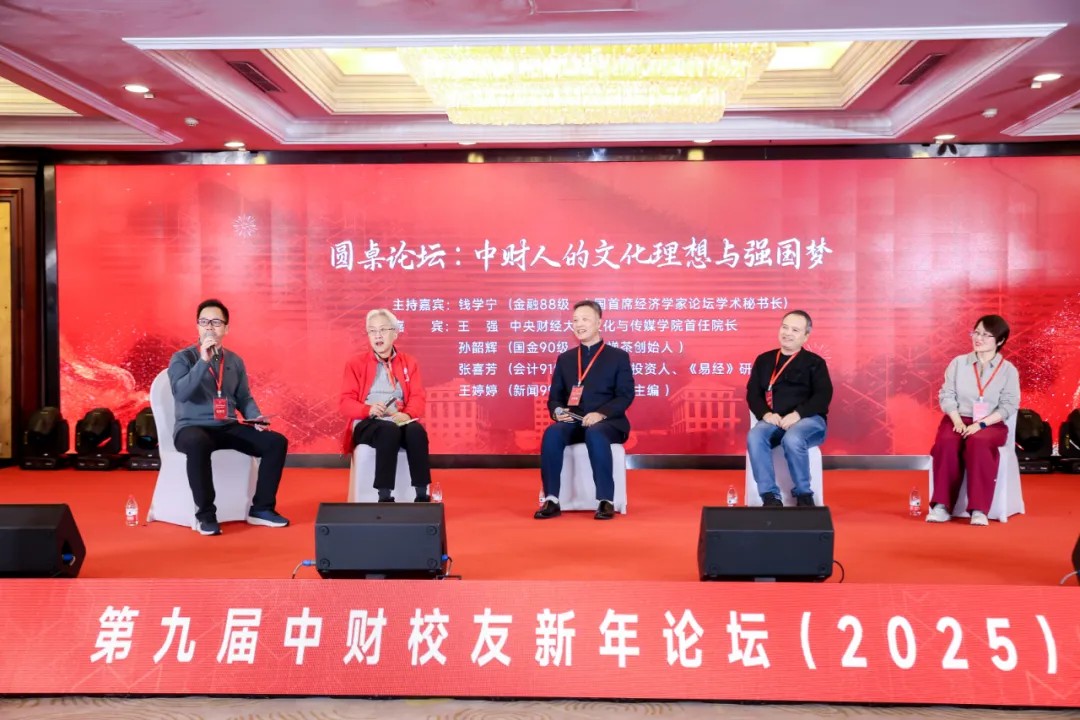 第二场圆桌论坛以“中财人的文化理想与强国梦”为主题,由金融1988级校友、中国首席经济学家论坛学术秘书长钱学宁主持,今年会文化与传媒学院首任院长王强,国金1990级校友、自在禅茶创始人孙韶辉,会计1991级校友、知名金融投资人、《易经》研学者张喜芳,新闻1999级校友、新浪财经主编王婷婷作为嘉宾,分享中国人的文化自信与国运大势之间的密切关联,共同探讨现代文明与传统文化、中西方文化之间的异同、协调与共存,对传统文化的回潮、数字化浪潮下文化产业的创新变革进行深入解读,纵横捭阖,干货满满。