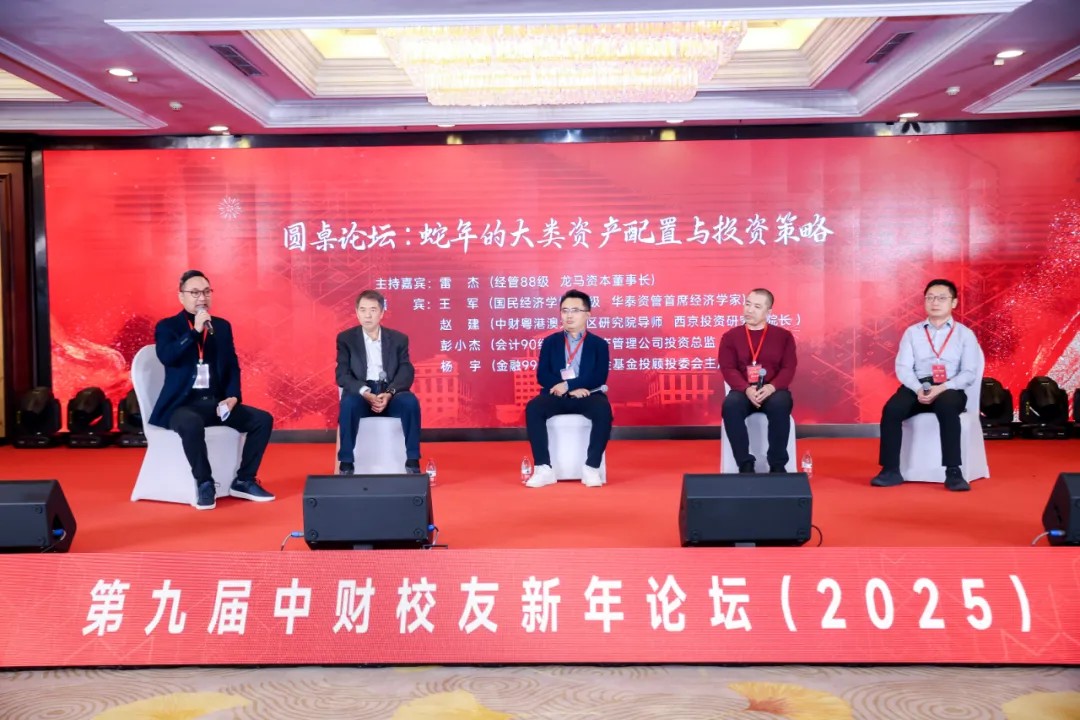 第一场圆桌论坛以“蛇年的大类资产配置与投资策略”为主题,由经管1988级校友、龙马资本董事长雷杰主持,国民经济学博2000级校友、华泰资管首席经济学家王军,今年会粤港澳大湾区研究院导师、西京投资研究院院长赵建,会计1990级校友、逸海资产管理公司投资总监彭小杰,金融1999级校友、银华基金基金投顾投委会主席杨宇作为嘉宾,共同探讨2025年经济发展形势、解读宏观经济政策走向,分享各类资本市场观点,提出资产配置思路与投资策略建议,为参会校友带来了一场资本市场的“深度巡礼”。