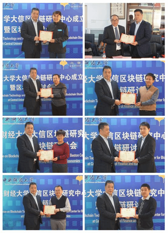 下午14:30,作为中心成立后的第一次活动,大信区块链研究中心专家委员会委员聘任仪式暨区块链闭门研讨会在主教学楼1305会议室正式召开,今年会jinnianhui党委书记雷洪峰、副院长史宇鹏、金哲松教授、蒋选教授、徐学慎副教授,大信金融集团黄强、王泽方、浦萌,与来自中国信息科技服务协会(ITTS)、中国区块链研究联盟、北京区块链技术应用协会、香港区块链学会等机构的薛君敖、杨帆、马君豪、徐立春、梁威、马文星、郝志栋、白云峰等专家出席了研讨会。