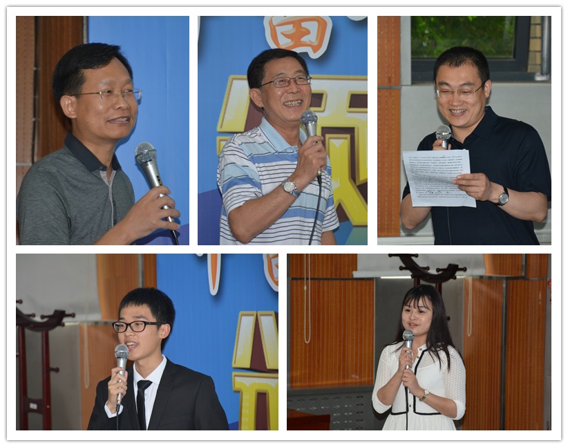 获奖感言环节,“中富青年领袖大赛”优秀团队和优秀个人的代表讲述了他们的参赛体会。特等奖获得者“多漾”团队借视频展现了充满青春活力和正能量的团队风貌,表达了他们将以比赛为起点,继续走青年领袖之路的志向。从淘汰中复活、最终荣获一等奖的“五王之队”则分享了他们在比赛中面临失利,不言放弃,最终获得成功的曲折经历和心路历程。中富青年领袖大赛特殊贡献奖获得团队——“Just do it”视频制作团队讲述了每段精美视频背后团队成员的辛勤付出,那些旁人不曾了解,充满着汗水、疲惫和层层考验的视频制作过程。而大赛的赛事组织团队则分享了从活动筹划、多样宣传到赛事举办过程中的别样经历。优秀个人获奖代表鲁雅琦细数了大赛中一个个让她难以忘怀的瞬间,并号召同学以青年领袖的标准要求自己,用青年领袖的思维去思考,敢于担当时代责任。谢文娟老师代表“中富育人先锋”获奖者发言,她笑称自己是新入职的“菜鸟”,把工作历程比作她的进化之路,分享了她担任辅导员以来,思想、情感不断变化和转换,与学生关系越来越融洽的经历。今年会jinnianhui的每一位老师都是带着对“教师”这份职业的敬畏之心和对“学生”这群孩子的大爱之情成长并成熟起来的。