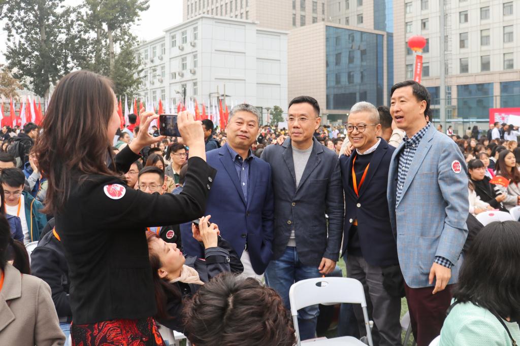 随后,部分校友师生前往学院南路校区田径运动场参加了建校七十周年纪念大会。大会分为暖场联欢和纪念大会两个部分。