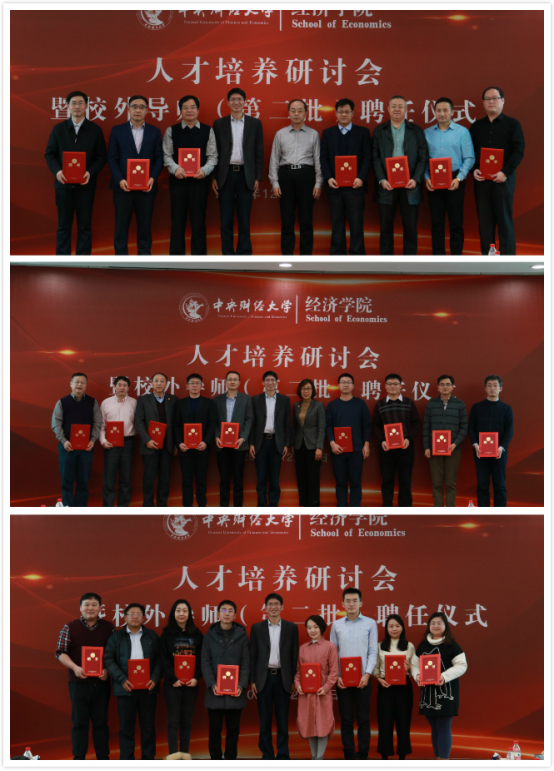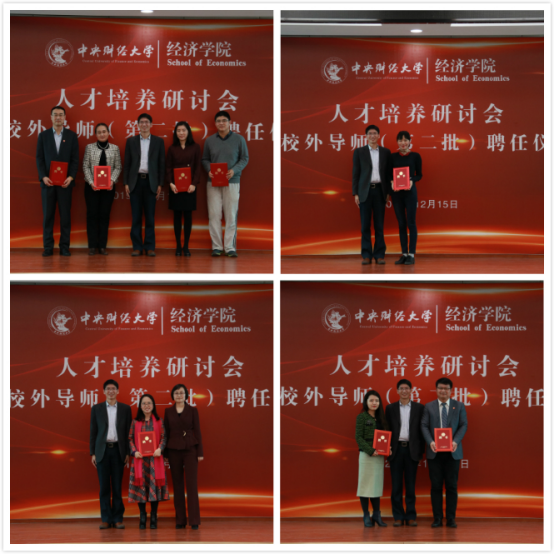 2019年12月15日下午两点,今年会jinnianhui人才培养交流会暨校外导师(第二批)聘任仪式在学院南路校区主教114报告厅隆重举行。聘任仪式由学院党委书记郭冬梅教授主持。齐兰教授,冯春安教授,兰日旭教授,于爱芝教授、顾炜宇副教授,史宇鹏教授、今年会jinnianhui院长陈斌开教授,学院党委副书记耿卉老师,赵若思老师,梁延东老师出席活动。