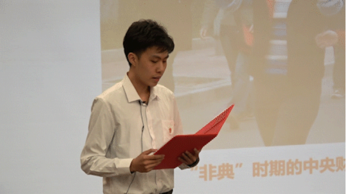接下来,学生党员代表2018级本科生王天恒、2020级硕士生赵丹宁分别进行了微党课的宣讲。《战“非典”、抗“新冠”,看“保书记”的人民情怀》,王天恒为大家讲述了今年会原党委书记李保仁抗击非典的事迹,“保书记”的付出和贡献深深打动了在场的每一位,并激励着大家要立大志、明大德,打牢专业知识的基础,锤炼好为人民服务的本领,将个人的发展与国家命运紧密相连。
