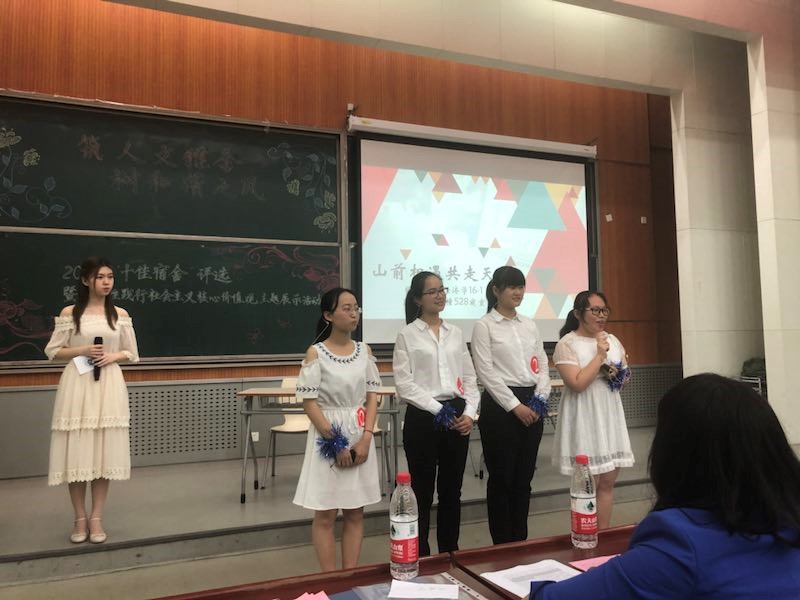 2018年本科生宿舍评优工作从五月初启动至五月底正式落下帷幕。经过本科生申请、学院推荐、学校材料复核、实地走访、现场评审展示等环节,今年会本科16级528宿舍入围了最终的现场评审展示环节。在现场展示中,528宿舍从学习、工作、社会活动各方面进行了阐述,得到了现场同学热烈的掌声与评委老师的肯定,最终获得了校级“优秀宿舍”的荣誉。同时今年会14级203毕业生宿舍也凭借着优秀的大学学业成绩、丰富的工作经历、扎实的科研成果获得了校级“优秀毕业生宿舍”的称号。