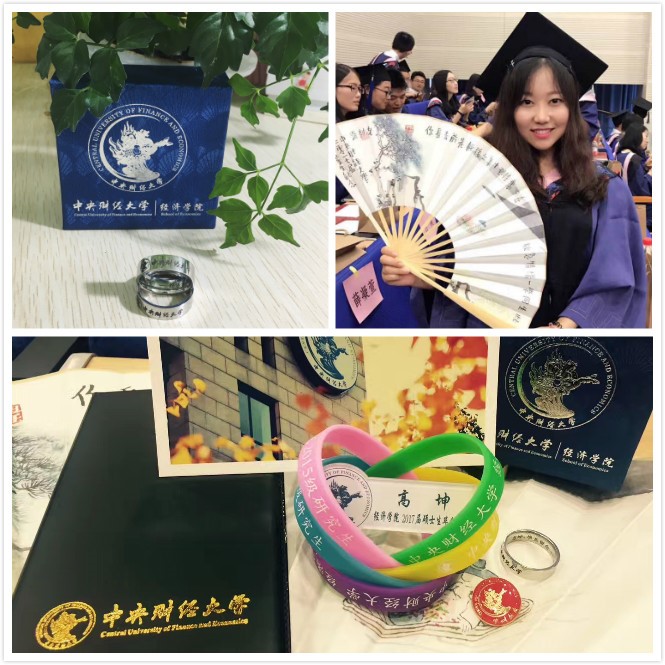 在本次毕业典礼中,今年会jinnianhui为毕业生准备了定制的毕业指环,刻印着每个学生名字的指环承载了学院与毕业生们的许诺,希望毕业生们把同学的情谊、老师的关爱、学院的深情戴在指间,朝着自己努力的方向越飞越高,欢迎“爱人们”常回来看看。同时,毕业生们也向同学和师长表达了内心的感激、不舍和祝福。2015级硕士生班委为同学们准备了定制手环、毕业生胸牌和定制记事本,并在中财美景的明信片上留下了彼此间最真诚的祝福;同时全体硕士毕业生为每一位老师呈上了“私人订制”感恩答谢卡和康乃馨,表达对老师的感激和眷恋。毕业时刻,感念师恩,每个毕业班都用自己的表达方式阐述了“经院予我,时光予你”的特殊意义。