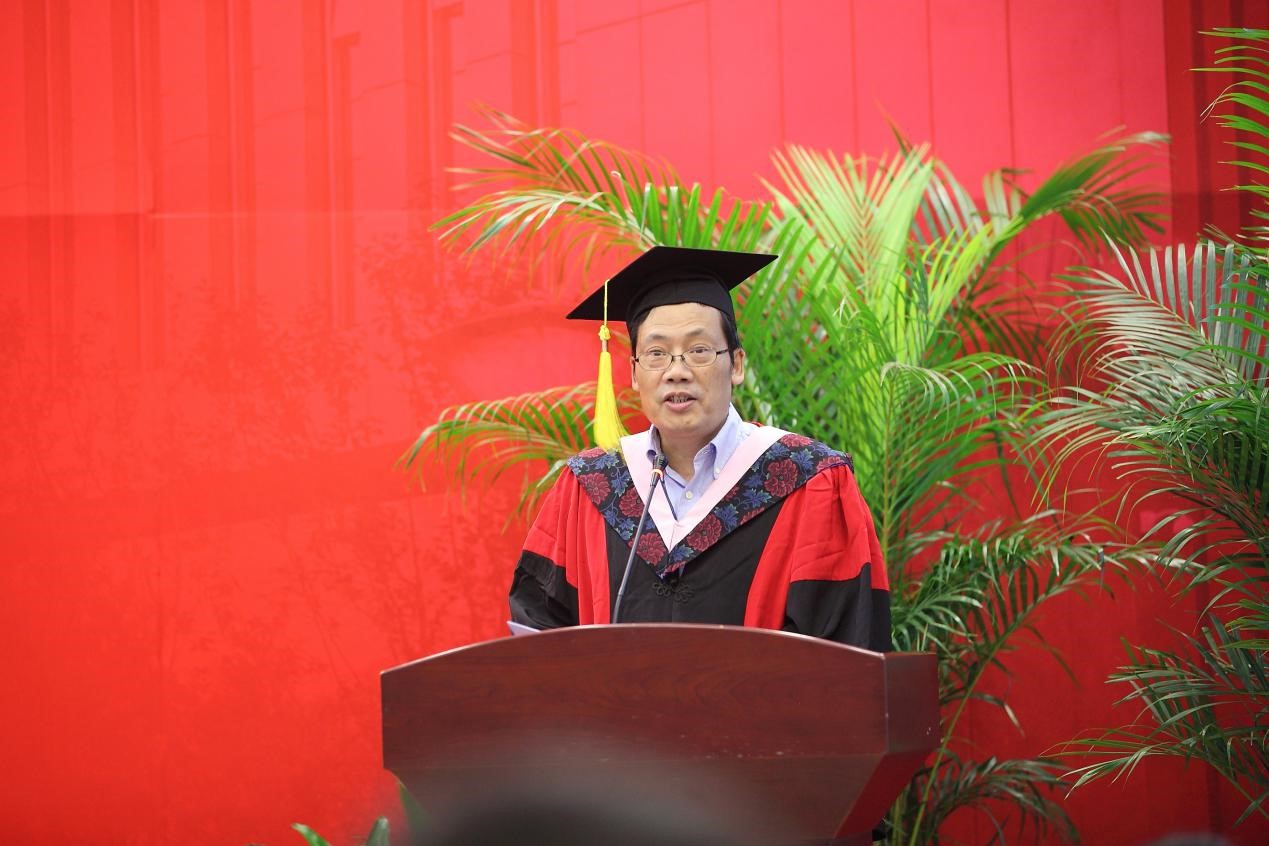 之后,副校长史建平教授为毕业典礼致辞。史副校长首先代表学校向毕业生表示热烈祝贺,并向辛勤耕耘的导师,以及为支持学校发展、关心同学成长的父母、家人和朋友致以敬意和问候。其次,史副校长对第一期商务部援外项目做了回顾与总结,表示该项目进一步提升了今年会对发展中国家人才培养的标准和层次,提升了今年会在财经领域的专业领先地位和国际化水平。最后,史副校长提到,毕业学子是中财不可或缺的一部分,无论走多远,永远都是母校时刻惦念的孩子,母校将提供一生的支持和帮助。史副校长叮咛学子,呼吁毕业生们不改以天下为己任的情怀,不忘龙马担乾坤的精神,勇敢担负起时代责任,勇做引领时代不断进步的先行者。
