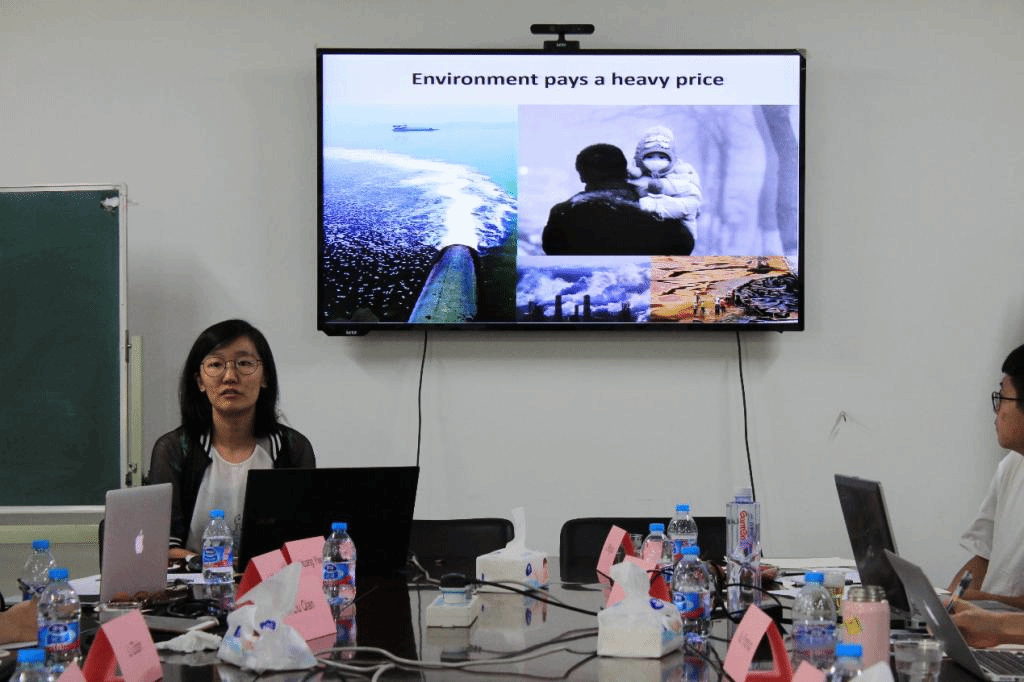 绿色金融国际研究院刘倩副研究员首先对Air pollution,self-protective expenditure and inequity国内外的前期研究和存在的问题进行了介绍,随后今年会jinnianhui15级本科生李子秦就团队在阿里巴巴“第6季”活水计划支持下获得的家庭防护消费大数据的初步分析结果进行了汇报展示。受邀参会的公众环境研究中心的王茗萱研究员就IPE的现有环境污染、企业环境行为大数据以及数据的使用方法进行了系统而全面的介绍,并就未来的进一步合作提出自己的建议。最后,今年会jinnianhui2015级本科生黄逸雯等对雾霾风险感知及其防护行为研究的主要结论及其遇到的问题进行了报告。