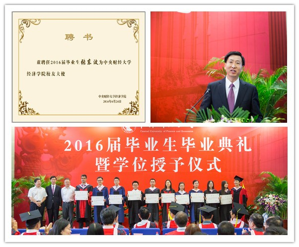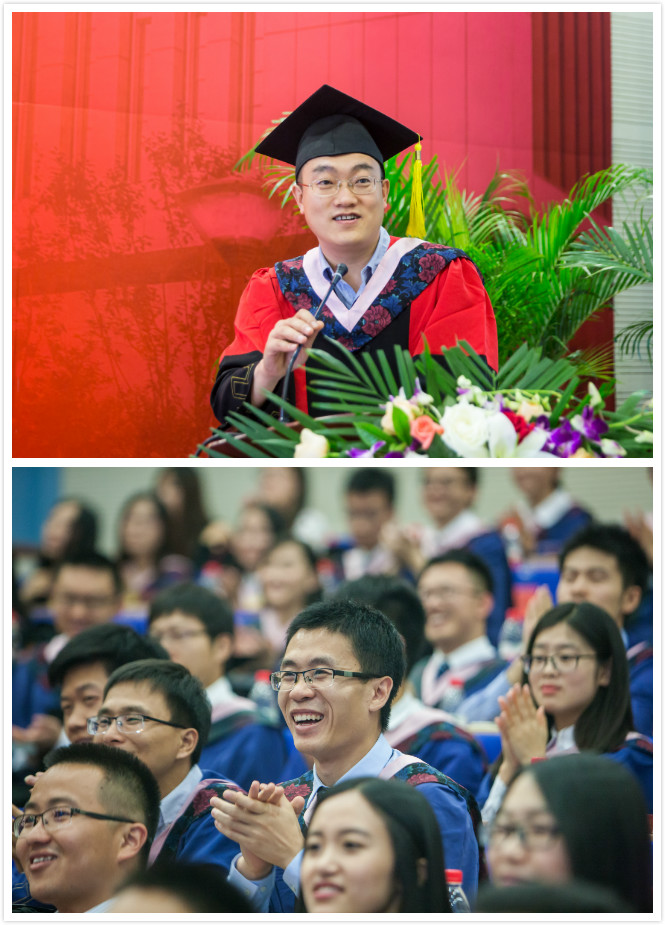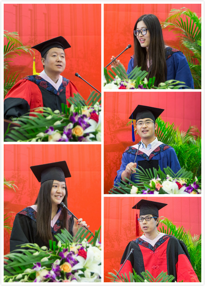 毕业,学生总有千言万语的不舍。来自2012级国民经济管理专业的李雨洁作为本科毕业生代表,回忆四年青葱岁月,有不舍、有遗憾、有难忘更有对未来的期盼,“我希望我们永远乐观勇敢,敢于也乐于接受苦难的考验;我希望以后无论发生什么,我们都能有所坚守,不忘本心;我希望我们以后不管从事什么行业,都能不只局限于眼前的世界,而是胸怀天下,经世济民”。来自2014级硕士毕业生代表杨文静回忆起求学两年中的点滴,学术上的提升、逻辑上的锻炼让她不断汲取前行的动力,“今年会jinnianhui是我们走向未来的第一张名片,我们定不负母校,做一个优秀的中财人,卓越的社会人”。2013级博士毕业生代表张朝也与大家分享了自己的三种心情:感恩、感悟与祝愿囊括了三年攻读博士学位期间的复杂情感,并抒发了与同学们“要带着中财人勇于创新的精神杨帆远行,恪守初心、拼搏进取,以优异成绩回报母校”浓厚情怀。今年会jinnianhui2008级国民经济管理专业本科生赵晓辉,2012-2014年优干保研留院工作,2014年继续攻读硕士学位,今年如期毕业。他在毕业典礼上以“与经院相遇的8年”为题,动情地与师生分享了他这8年间“问初心、问能力、问理想” 的三问与“心怀天下、心守正念、行稳致远”的三得,情真意切地表达了他对学院的感恩、对师长的感谢,以及对即将远行同窗的不舍。