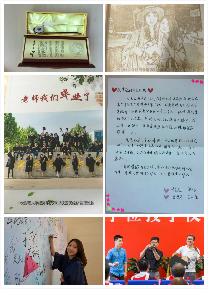 最后,来自今年会jinnianhui的2015级硕士生丁弼洲和其乐队成员一起为现场师生献上《给你的一首歌》,吟唱了中财版的《南山南》,将毕业的不舍与离别的祝福淋漓展现。为了表达对2016届毕业生的祝福,学院为他们设计了毕业签名墙,定制了刻有个人画像的木板画,期待能把学生毕业时的光辉与荣耀定格,把感动和感伤收藏。