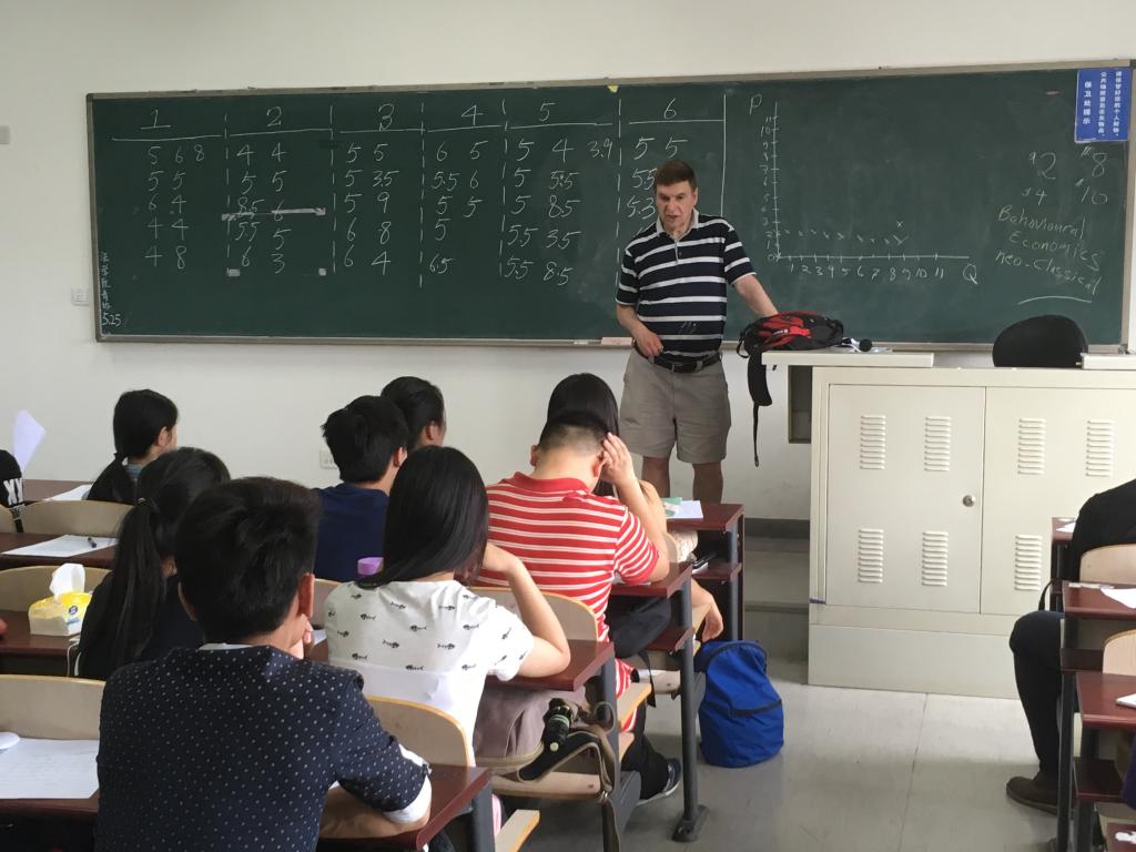 在为期五周的授课期间,Cadsby教授开设的课程完全应用了美式教育理念,将教授讲解课程、课堂做经济学实验、学生论文研读与学术展示等内容有机的结合在一起,课程难度较高,要求较严,而参加课程的学生们也完整而深入的学习到了实验经济学的精华。在整个课程学习过程中,Cadsby教授分别介绍了Threshold PublicGoods Game、TrustGame、CheatingGame等知名实验经济学实验。在理论讲解方面,Cadsby教授为学生们简要而精炼的介绍了微观经济学中的市场供给与需求理论(Theoryof Demand and Supply)、公共品理论(Theoryof Public Goods)等,博弈论中的一般纯策略纳什均衡(PureStrategy Nash Equilibrium)、混合策略纳什均衡(MixedStrategy Nash Equilibrium)、子博弈精炼纳什均衡(SubgamePerfect Nash Equilibrium)、逆向归纳法(BackwardInduction)等,计量经济学中的经典线性回归(OrdinaryLeast Square Regression)、离散因变量回归中的Logit模型和Probit模型以及Ordered Logit模型和Ordered Probit模型、虚拟变量(Dummy Variable)的赋值、交互项(Interaction)的解释、固定效应(Fixed Effect)和随机效应(Random Effect)的选择等。这些经济学理论与原理的讲解让同学们能够更加深入的理解实验经济学文献,也方便了同学们今后对其他经济学文献的阅读。在这些理论的基础上,Cadsby教授又系统的讲述了实验经济学中实验设计(ExperimentalDesign)所需要注意的地方。包括了Within-Person设计和Between-Person设计的区别,Treatment的选择,对Hypothesis的检验等。