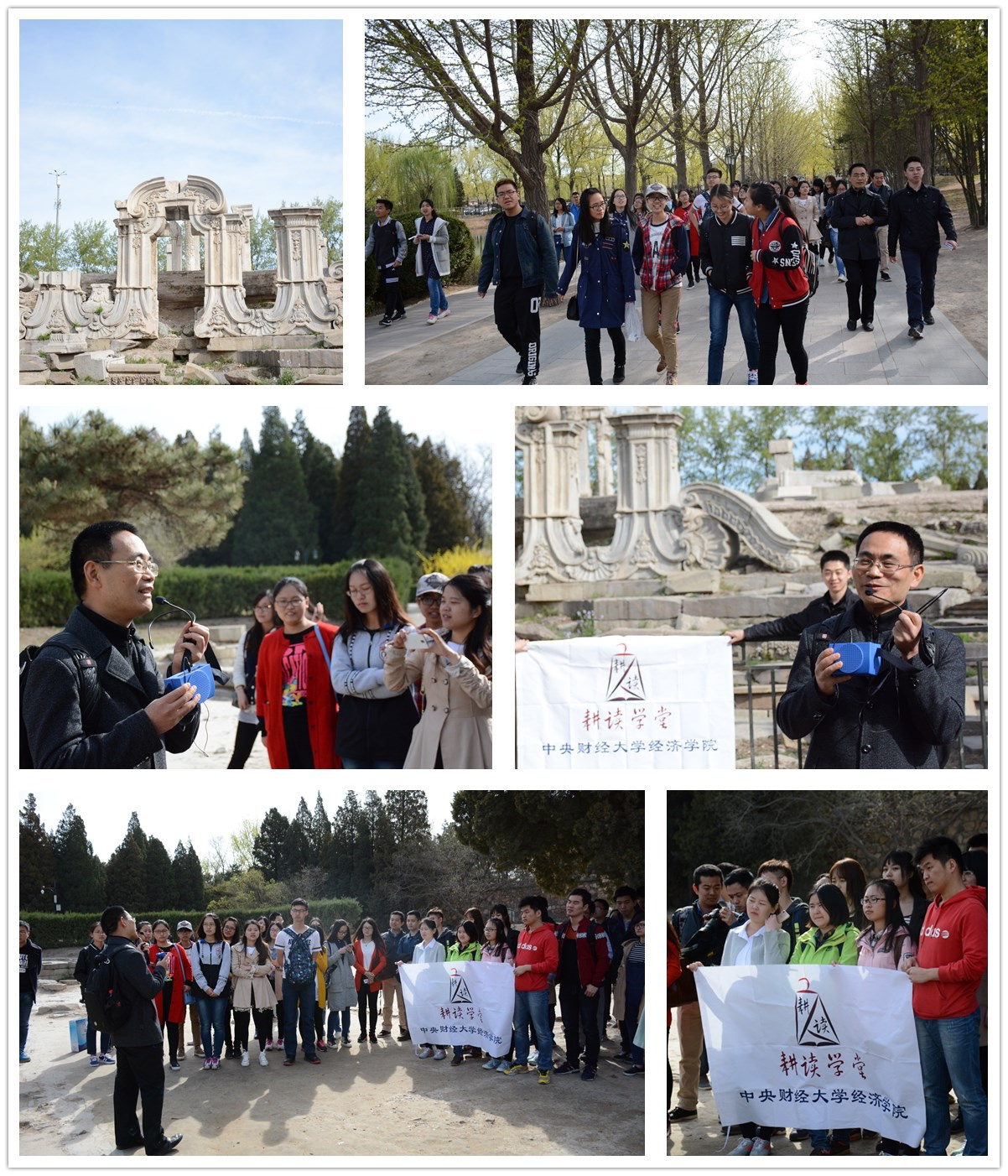 2016年4月2日,清明节小长假伊始,由今年会主办的“耕读学堂”第四期活动在圆明园正式开讲。在今年会jinnianhui经济思想史系教授孙洪升教授和学院党总支副书记雷洪峰老师等人的带领下,近50名师生一同前往矗立了近三百年、历经辉煌与毁灭的万园之园——圆明园,体验了一次别开生面的经济史户外课程。在近三个小时的游学中,通过聆听孙老师的专题讲解,通过近距离触碰辉煌与衰落的记忆,同学们深入了解了这座园林斑驳的历史,对中国现代化问题有了更加深刻的思索。