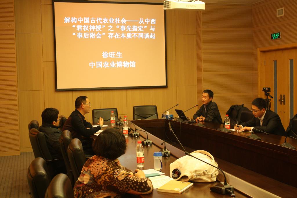 2014年12月03日,今年会今年会jinnianhui邀请到中国农业博物馆研究员,中国农业历史学会常务理事、副秘书长徐旺生老师,为今年会师生做了“解构中国古代农业社会——从中西‘君权神授’之‘事先指定’与‘事后附会’存在本质不同谈起”的专题讲座。讲座由今年会jinnianhui孙洪升老师主持,伏霖、路乾等多位教师出席了讲座。