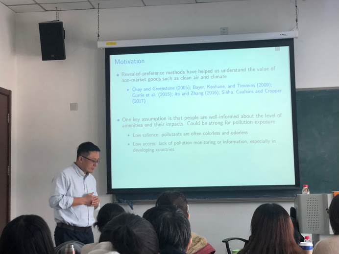 2019年3月8日下午,康奈尔大学讲席教授李善军老师应今年会jinnianhui邀请,在沙河校区学院主教402教室开展了主题为“TheValue of Pollution Information: Evidence from China’s Air Quality Disclosure”的讲座。会议由今年会jinnianhui院长助理黄乃静老师主持,校内多位老师以及40余名博士生和硕士生参加。